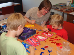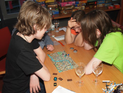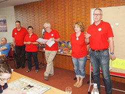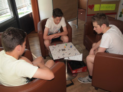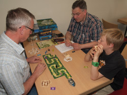 Nach drei Runden mit acht Spielen stehen dann die Gewinner fest: einen guten dritten Platz belegt Andreas, knapp überholt von Jarne mit der Silbermedaille, während Tommie es sich nicht nehmen lässt, in einem souveränen Endspiel als Gewinner des Nachmittags den ersten Preis entgegenzunehmen. Letztendlich haben alle Mitspieler/innen gewonnen, die danach eher etwas gemütlich zu den Brettspielen zurückkehrten.
