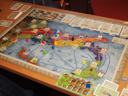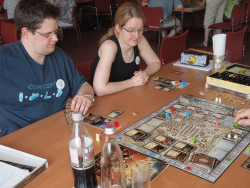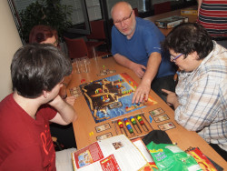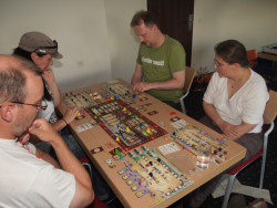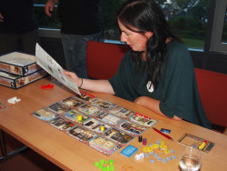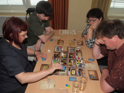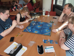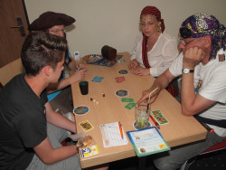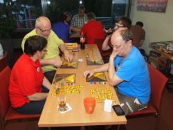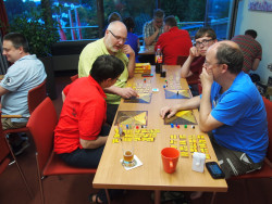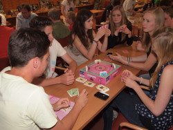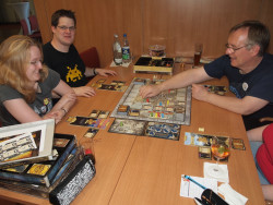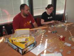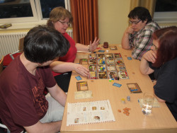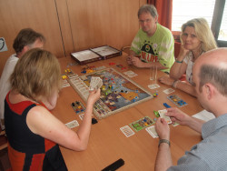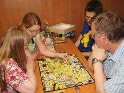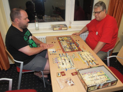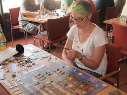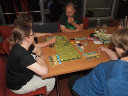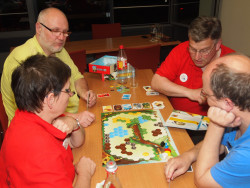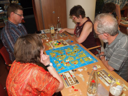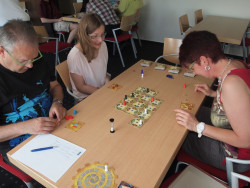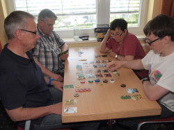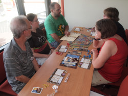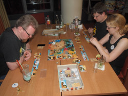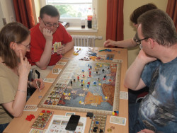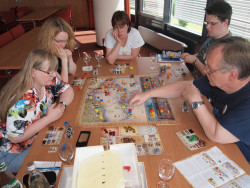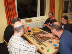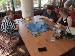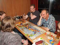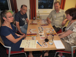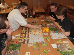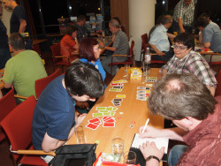 Montag hieß es dann bereits für einige wenige Reisende, die Dienstag wieder arbeiten mussten, Koffer packen. Für die Anderen wartete am Abend dann noch ein Qwixx-Tunrier, dass uns samt Preisen für beide Wochenenden der Nürnberger-Spielkarten-Verlag gesponsert hat. Doch der Drang, möglichst viele der brandaktuellen Titel noch bis zur Abreise ausprobieren zu können, hielt die Turnierlaune sehr in Grenzen und so wurde dieses auf die nächste Spielenacht in Altenberg verschoben.