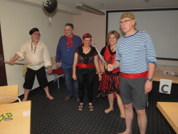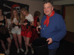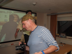 Um 21:00 Uhr Ortszeit stechen wir am Sonntag in See. Eine bunte, bestens ausgerüstete Truppe von nahezu 30 Piraten sind angeheuert. Zunächst werden sie alle mit einem kräftigen Schluck „Ahoi Brause“ gestärkt.